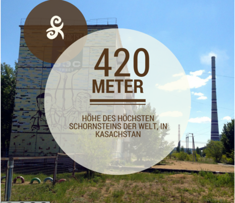 Der Schornstein steht in einem Dorf bei Ekibastus, das „Sonnig“ (Solnechni) heißt.