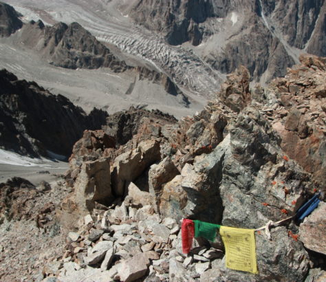 Vue depuis le sommet du pic Uchitel à 4530m sur le glacier d'Ak-Sai, dans le parc national d'Ala Archa au sud de Bichkek (Kirghizstan). L'exceptionnelle chaleur de l'été 2015 fait… [...]