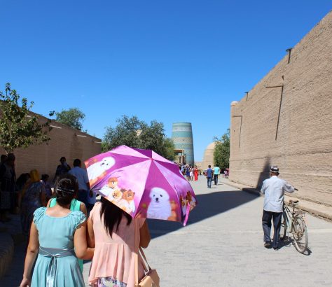 Auf den Straßen von Chiwa sind die einzigen Hunde auf den Regen- oder eher Sonnenschirmen abgebildet. Findet alle unsere Bilder des Tages hier.