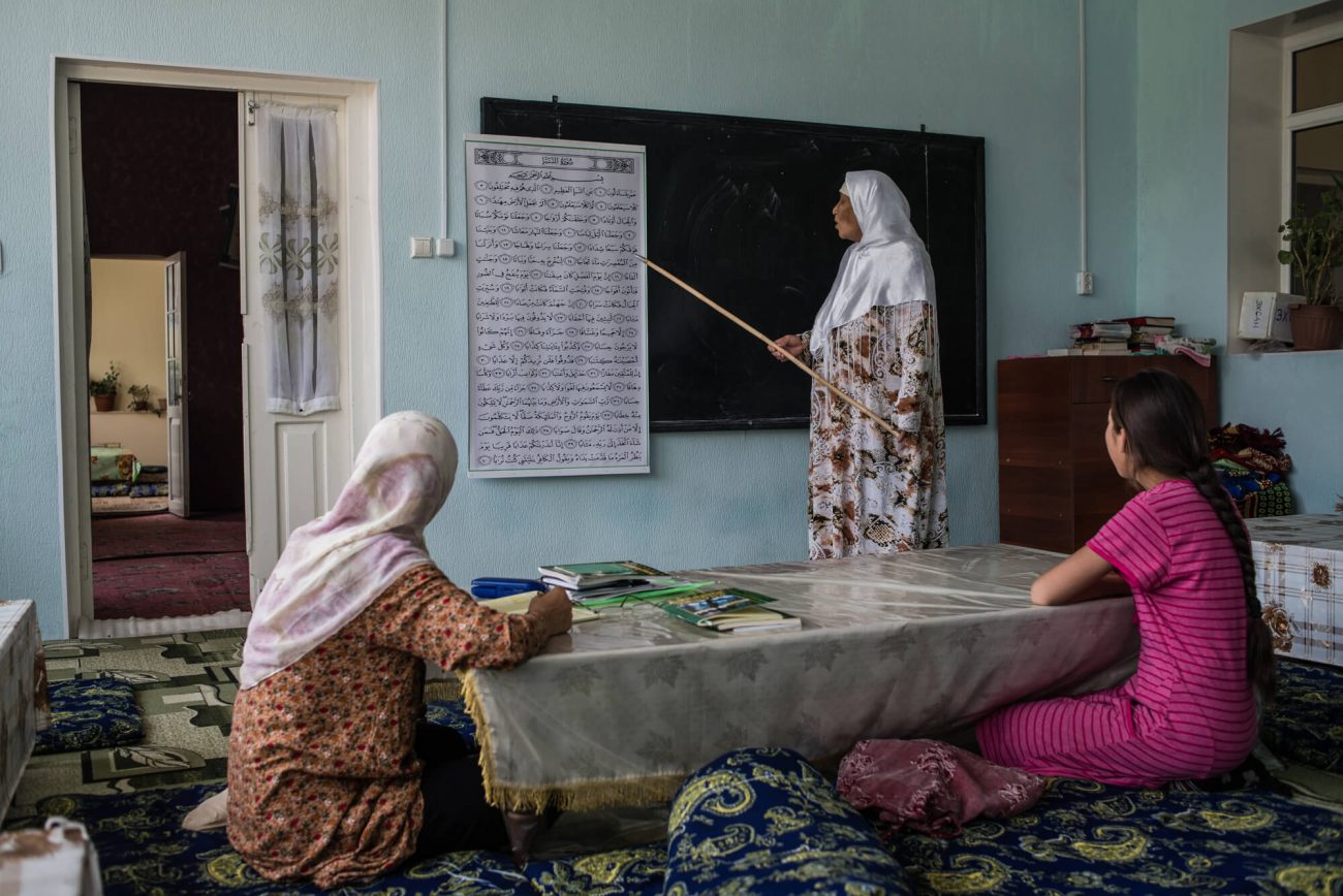 Im Büro der Organisation Mutakalim in Osch lernen kirgisische Frauen, Koranverse auf Arabisch zu lesen.