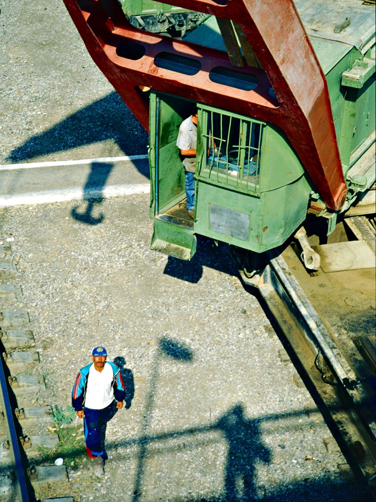 Ein Eisenbahnkran, der im Rahmen von Gleisbauarbeiten eingesetzt war, gesehen von einer Fußgängerbrücke im Bahnhof Aschgabat.Kredit: Joachim Bohndorf (Deutschland)Findet alle unsere Bilder des Tages hier.