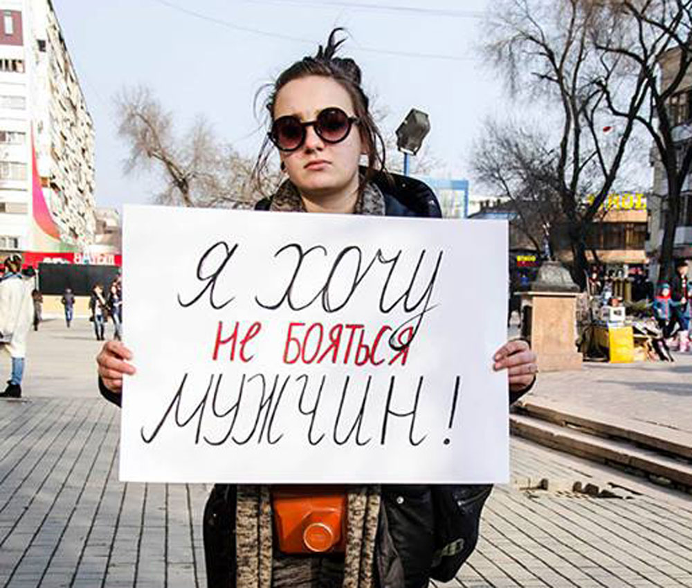 Im Arbat, der bekannten Fußgängerzone in Almaty, trägt fast jede Frau Blumen mit sich herum. Heute bekommt sie lauter schöne Dinge. Gelbe Tulpen, Luftballons, vielleicht auch Kuchen. Heute muss jede Frau schön sein. Doch es gibt Frauen, die an diesem Tag etwas anderes vorhaben, als sich beschenken zu lassen und Kuchen zu essen. An der Straßenecke hat sich eine kleine Gruppe versammelt. Es sind Frauen verschiedenen Alters mit Plakaten in den Händen. Sie wollen heute Demonstrieren.