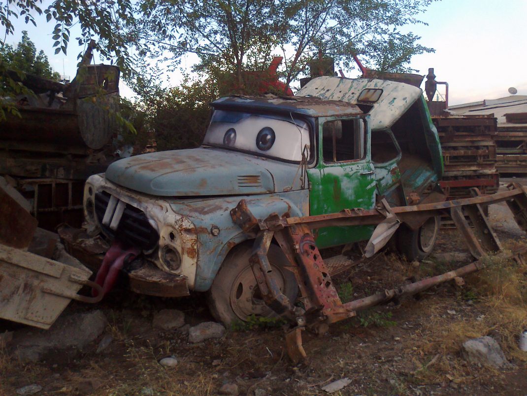 Mittlerweile können wir das vereinen – damals konnten wir das nicht, weil die Aufträge alle unsere Zeit beanspruchten. An einem Auftrag saßen wir zum Beispiel drei Monate, pausenlos. Da ist einem nicht mehr nach Kunst zumute. Das war damals ein Club in Almaty (die größte Stadt in Kasachstan, direkt an der Grenze zu Kirgistan, Anm.d.Red.), mit dem Namen „Blech“ – und alles sollte dem Namen entsprechend aussehen. Erst nach wiederholter Stagnation kamen wir wieder raus auf die Straße. In Almaty kam die Krise, und wir kehrten nach Bischkek zurück. Danach hatten wir zwei Monate frei.