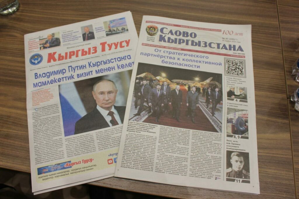 Dieselbe Herablassung zeigte sich auch unter den Mitgliedern des Kreml-Pressepools, die an der Reise teilgenommen hatten. Zwei Korrespondenten der staatlichen Nachrichtenagentur RIA Novosti untersuchten eine Ausgabe der kirgisischen Zeitung „Tuusu“. „Schau mal, die ist in der Landessprache!“, sagte einer von ihnen und wedelte seinem Kollegen amüsiert mit dem Dokument vor der Nase herum, während sie versuchten, die Wörter zu entziffern.