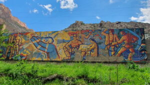 In Bochtar (besser bekannt als Qurghonteppa, A.d.Ü.) sind nicht viele Mosaike erhalten geblieben. Abdurahmon hat die ganze Stadt abgeklappert und hat sogar ein Wandbild gefunden, von dem nicht mal die Bewohner:innen des Ortes wussten.
