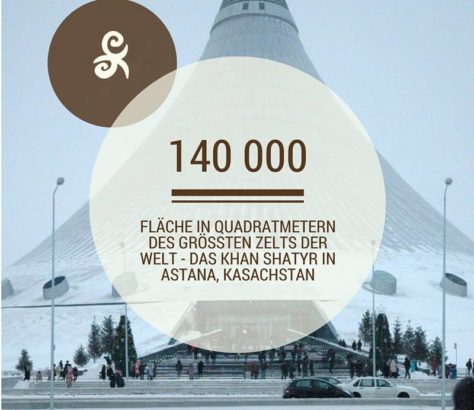Blick auf das größte Zelt der Welt. Das Khan Shatyr (kasachisch für “königliches Zelt”) wurde von Norman Foster erbaut und ist eines der markantesten architektonischen Merkmale der… [...]