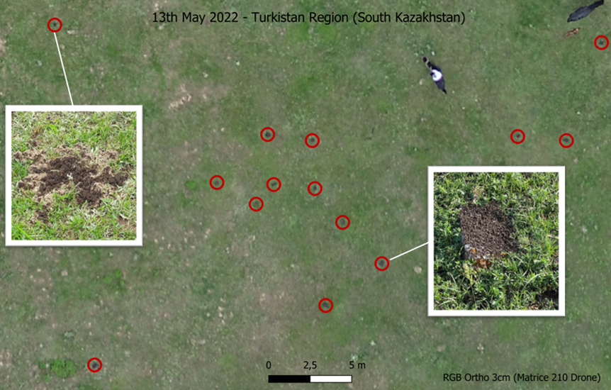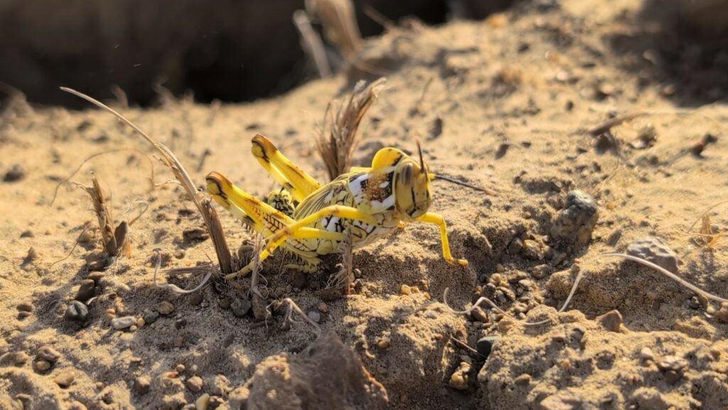 Aber Heuschreckenplagen in Zentralasien? Tatsächlich bietet Zentralasien aufgrund der semi-ariden und ariden Bedingungen ideale Voraussetzungen und Lebensräume für viele Heuschreckenarten (Foto 1). Vor allem die Marokkanische Wanderheuschrecke (Foto 2), die Italienische Schönschrecke (Titelbild) und die Asiatische Wanderheuschrecke sind gefährliche Arten und müssen in Zentralasien jedes Jahr beobachtet und bekämpft werden.