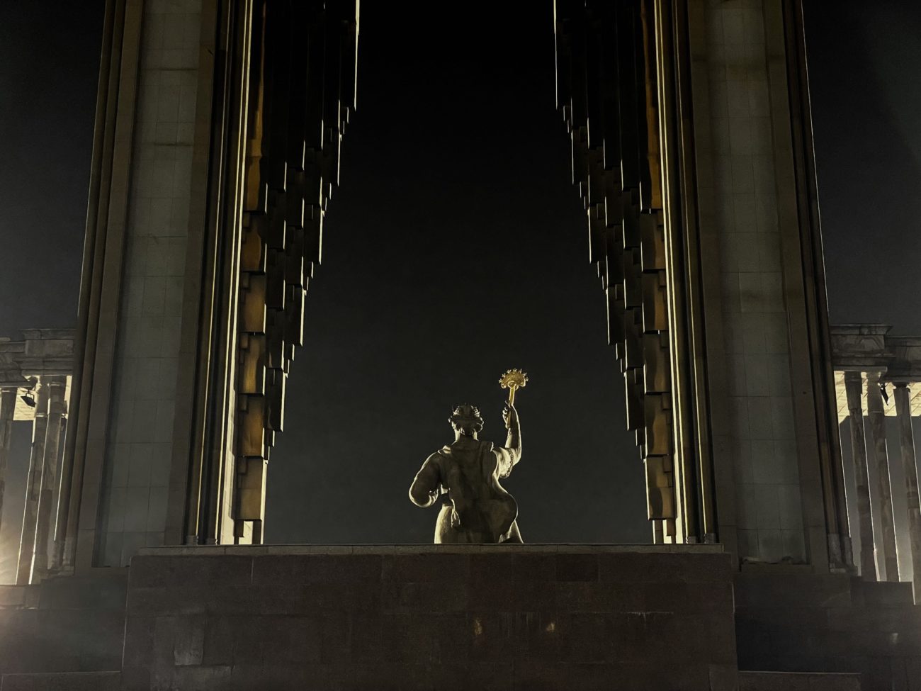 An unusal view to the Ismoil Somoni Statue at night. The monument is the landmark of Tajikistan’s capital Dushanbe and remembers the national hero of the country. Credit: Fiona Smith (Germany)