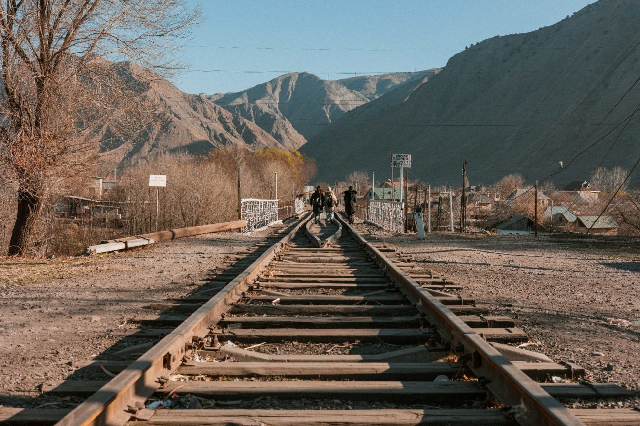The now disused railway running through Tash-Kömür in Kyrgyzstan. Today the tracks are only used by pedestrians. Credit: Alex Wordley