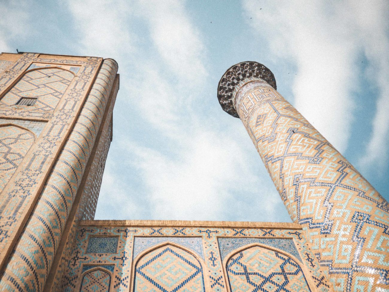 The complements of the sandy desert of Uzbekistan and the blue sky reflected in the colors of the Registan’s walls and mosaics. Credit: Ashley and Quentin (France)