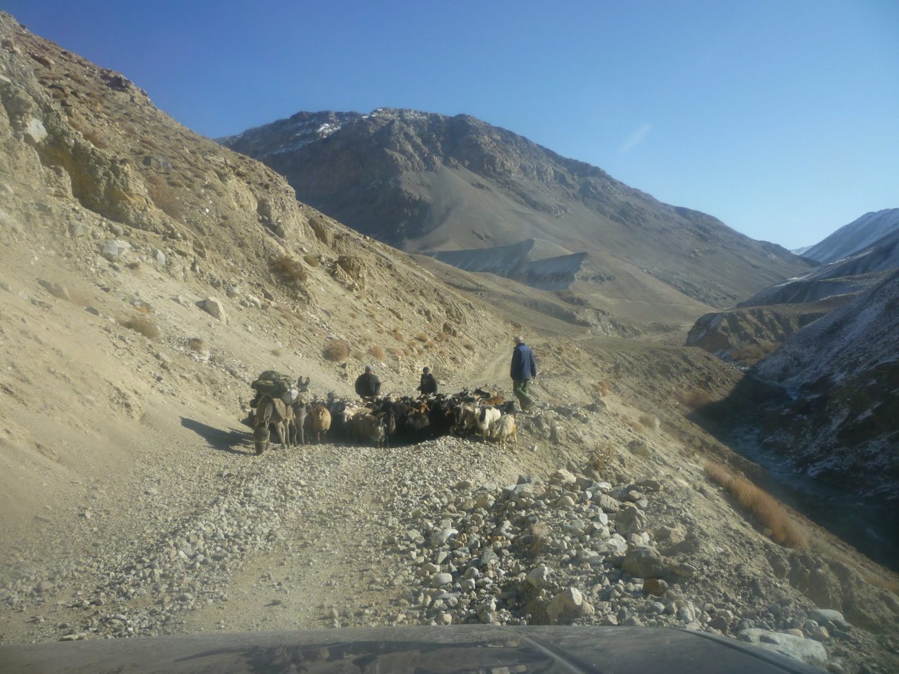 Driving behind a herd in the high Pamir Mountains of Tajikistan.