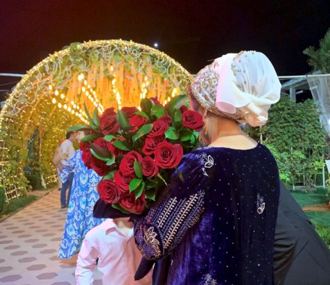 Photo shoot in wedding attire in front of the Registan in Samarkand. The red velvet symbolises fertility. The accessory that the bride-to-be holds in her hand is traditionally used… [...]