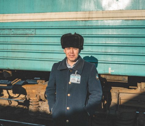 This traffic controller, Kuzembaev didn’t hesitate to crack a smile while waiting for the train to depart. His furry cap and wool coat, courtesy of his employer, Almaty Logistics, keep… [...]