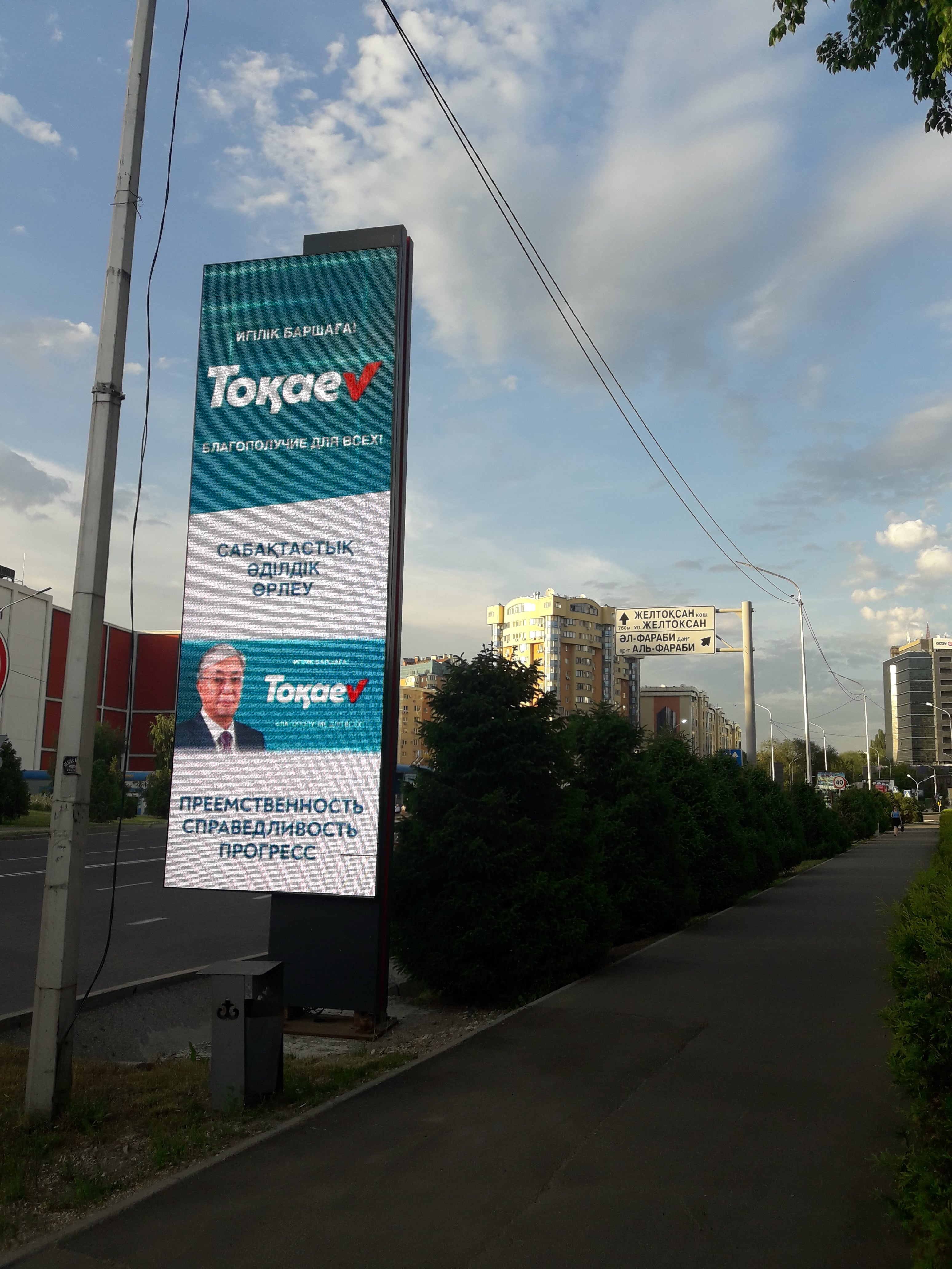 L'élection présidentielle au Kazakhstan du 9 juin prochain est caractérisée par une campagne officielle relativement timide, essentiellement basée sur l'affichage. De ce point de vue, le candidat du pouvoir dispose d'un avantage certain. Témoignage dans les rues d'Almaty, l'ancienne capitale du pays.