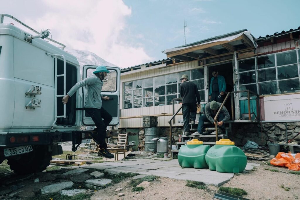 Cela fait trois semaines que Berik Kosjanov est sur place. Il s’apprête à redescendre en ville et lave ses vêtements avant son départ. « Il faut reprendre forme humaine avant de redescendre », plaisante-t-il. Le retour à Almaty prend plusieurs jours.