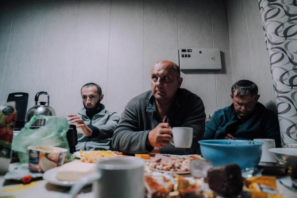 À la tombée de la nuit, le froid s’installe et le poêle est allumé. « Ici, la saison de chauffage dure toute l’année », plaisante Nikolaï Kasatkine. Fatigués mais satisfaits, les glaciologues dînent, boivent leur thé et s’endorment rapidement après une journée intense.