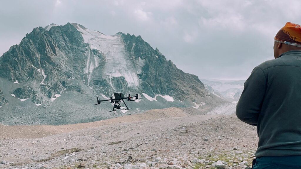 En parallèle, des glaciologues kazakhs ont mené des recherches géophysiques avec des scientifiques autrichiens sur un glacier recouvert de pierres. « Nous avons transporté une grande quantité de câbles et d’équipements. Aujourd’hui, porter un drone sur le dos, c’est comme une promenade aux Maldives », plaisante Vassili Kapitsa.
