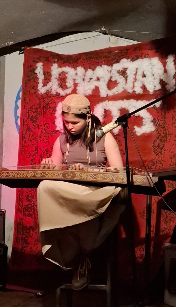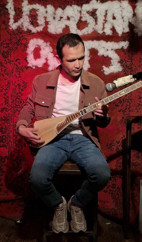 Grâce à l’association T.E.N (turcik european network) nous avons pu proposer à nos participants au début de la soirée 3 représentations d’instruments traditionnels : de jetigen – instrument kazakh présenté par Ulpan, de dombra par madame Ainar et de dutar, un instrument ouïghour présenté par Monsieur Barthez.
