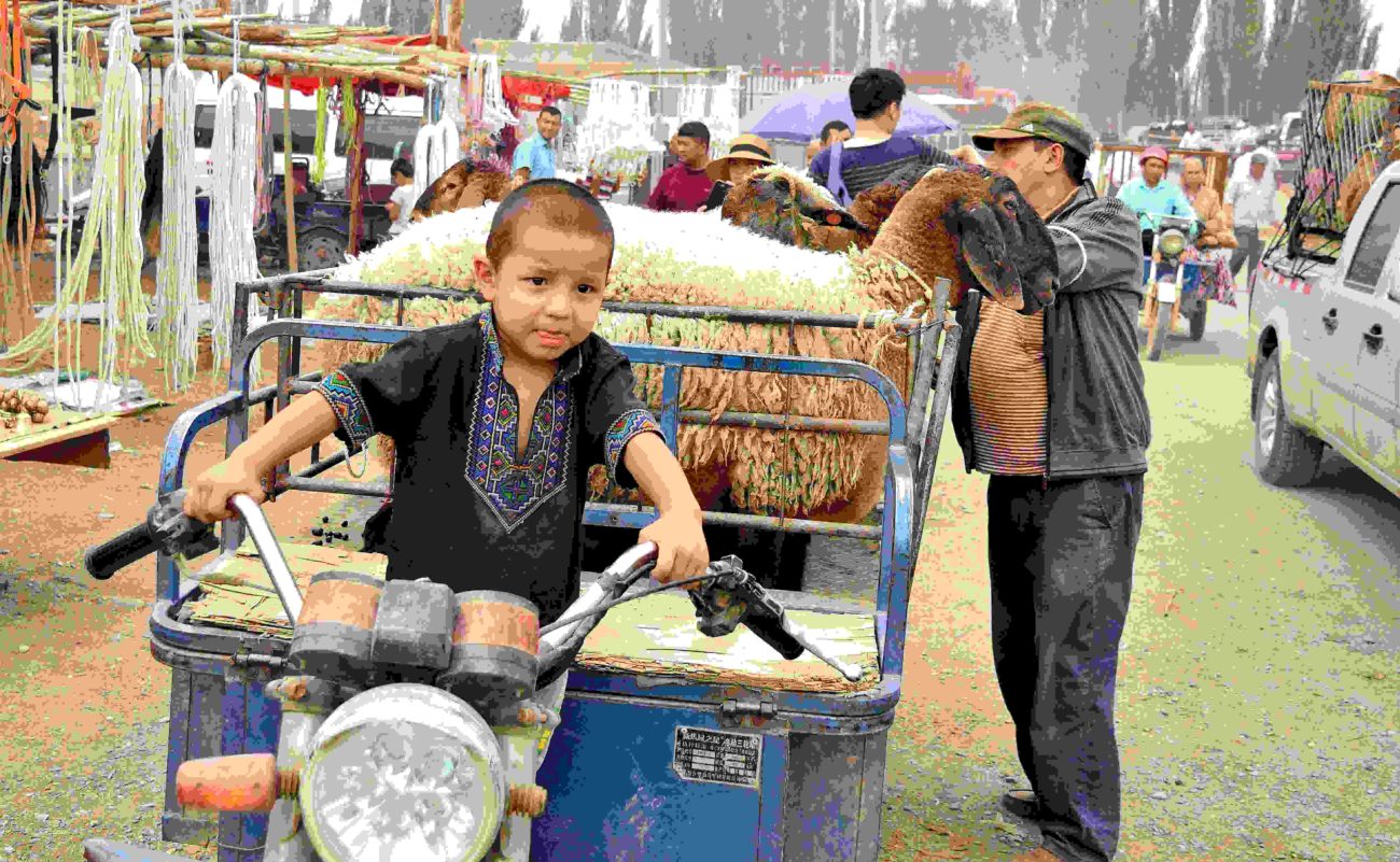 Un jeune conducteur sur le bazar de Kachgar dans la région autonome ouïghoure du Xinjiang en Chine.