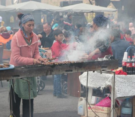 Une femme cuit et vend des chachliks, des brochettes à la centrasiatique, tandis que s’improvise un bazar autour de l’hippodrome de… [...]