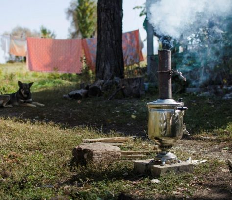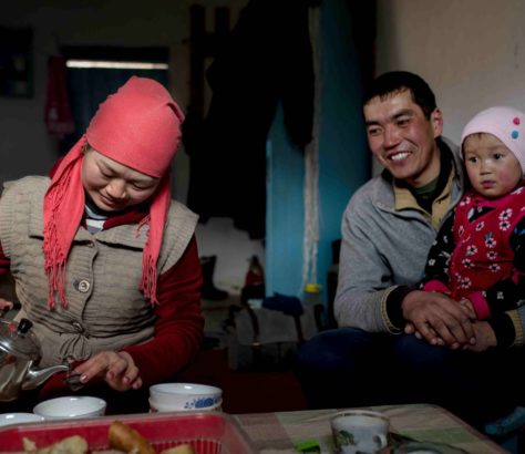 Des hommes prennent le thé sur un tapchan traditionnel sur la route entre Khiva et Boukhara, en Ouzbékistan. Crédit : Charlotte Bonin (France)… [...]