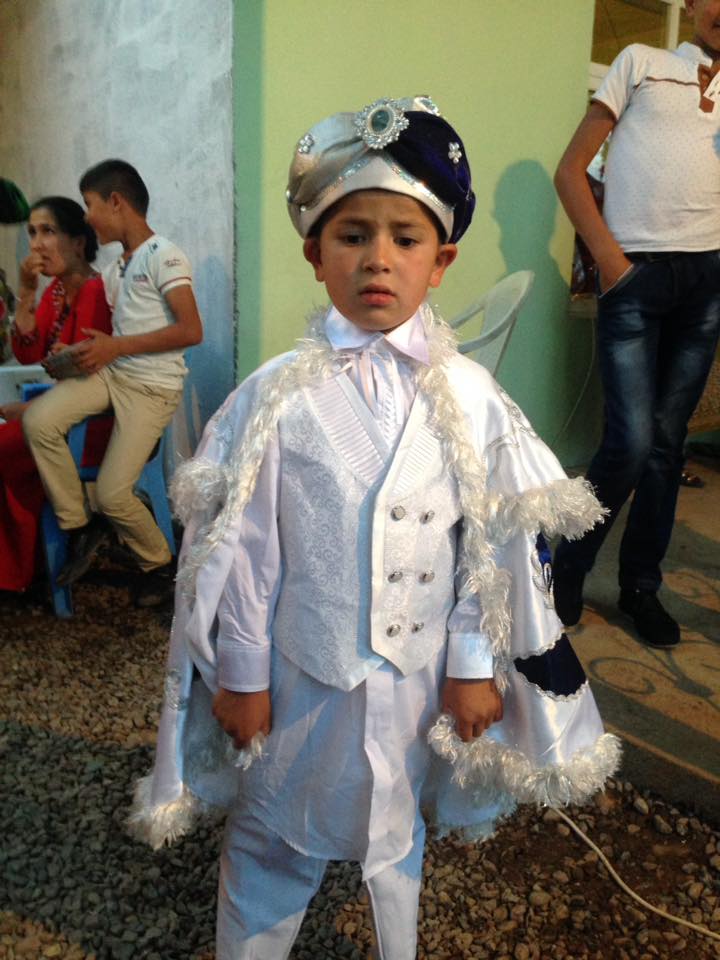 Abubaker (5) scheint kurz nach seiner Beschneidung noch ein wenig verwirrt. Dafür wird er ordentlich von seinen Freunden und Familie gefeiert und wurde für diesen Anlass besonders gekleidet wie ein kleiner Sultan. Üppige Beschneidungsfeste, wie sie in der Türkei für Jahre üblich waren, werden in Tadschikistan zunehmend beliebt. Insbesondere nachdem der Präsidentensohn Rustam Emomali 2011 eine pompöse Massenbeschneidungsfeier für bis zu 100 Jungen im zentralen Duschanbe gesponsert hat. Das islamische Ritual ist angesehen als ein Weg, nach Dekaden sowjetischer Herrschaft ein Nationalbewusstseins und einer muslimische Identität zu fördern.