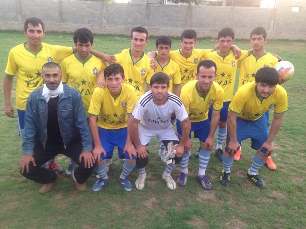 Dies ist die Mannschaft des Tuda Fußballklubs, direkt nach einem starken 4:0 Sieg gegen ihre Nachbarn und Erzrivalen im Dorf Surchochaschma, auf halbem Weg zwischen Duschanbe und der tadschikischen Grenze mit Usbekistan. Ihre Trikots stützen sich auf jene des brasilianischen Nationalteams (außer ihr Torwart von Real Madrid), da sie danach streben, in ähnlichem Stil zu spielen. Trainer Said (untere Reihe links) ist Veteran eines Moskauer Drittliga-Klubs und gibt diese wertvolle Erfahrung an sein junges Team weiter, während er mit dem Anbau von Obst und Gemüse in seinem Garten seinen Lebensunterhalt verdient.