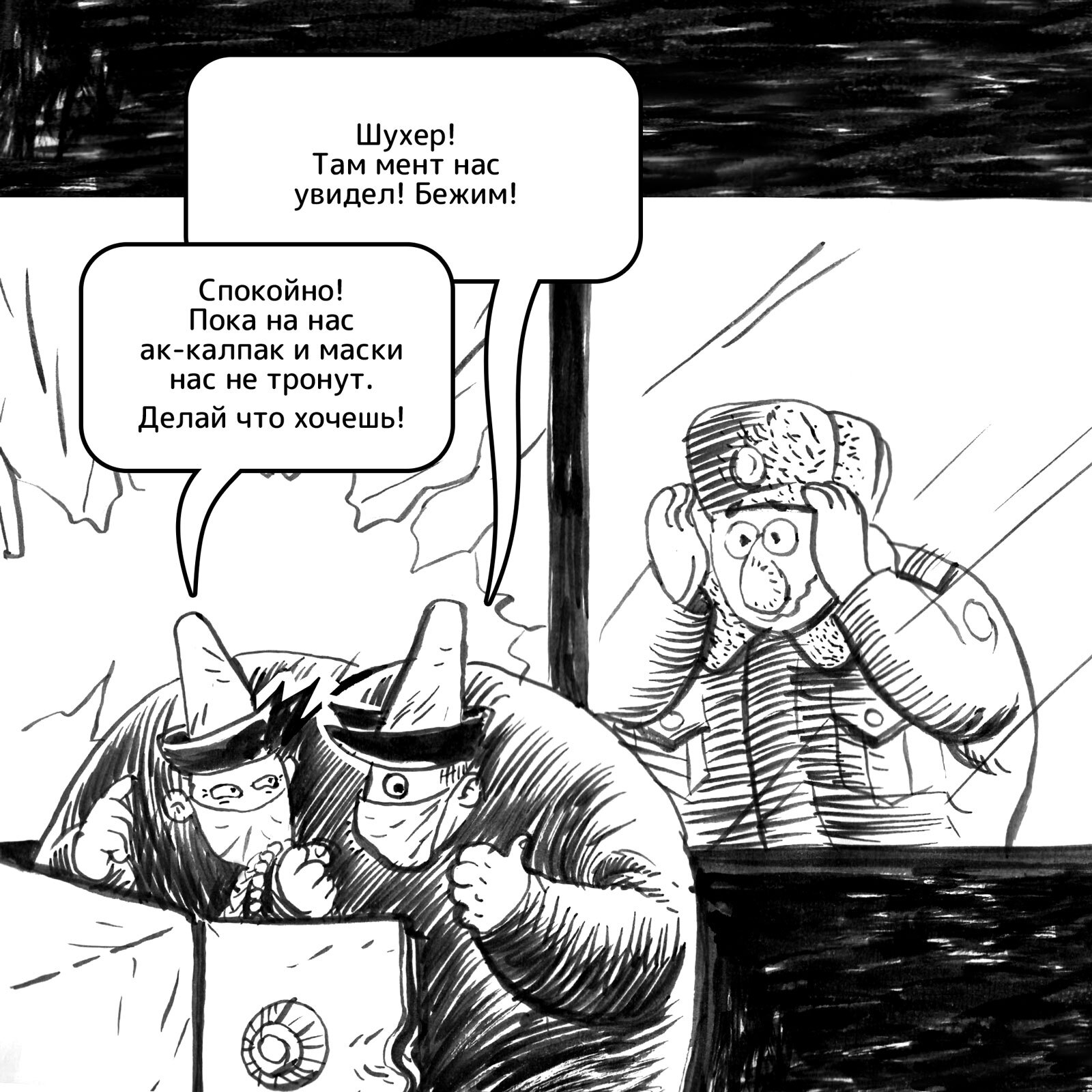– Du calme ! Tant que nous portons un Ak-Kalpak et des masques, il ne nous touchera pas. Fais ce que tu veux ! »
